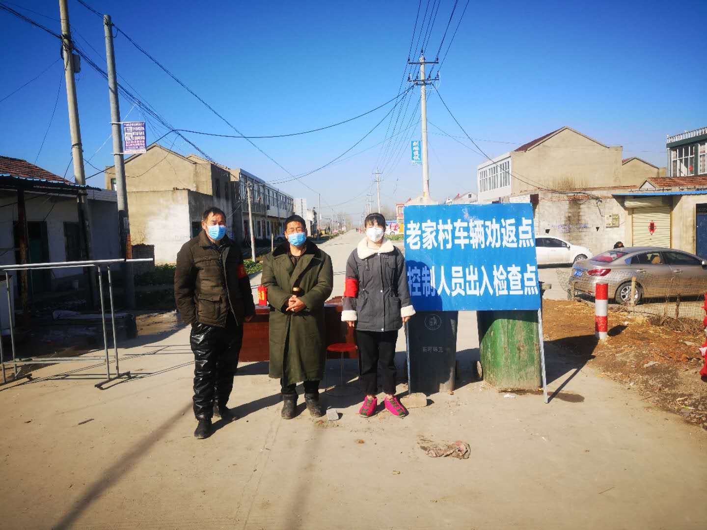 支部积极分子王珊在濉溪县老家村车辆劝返点参加志愿服务活动,对外来车辆进行劝返,对进出村的村民严格测量体温,风雨无阻,每日上岗。