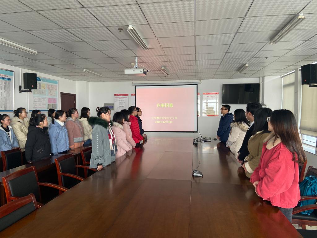 活动结束,全体党员齐唱国歌,贯彻了党员的爱国主义教育,弘扬了社会主义核心价值观,增强了党员同志爱党爱国的意识。(化学教育系员工党支部:王硕)