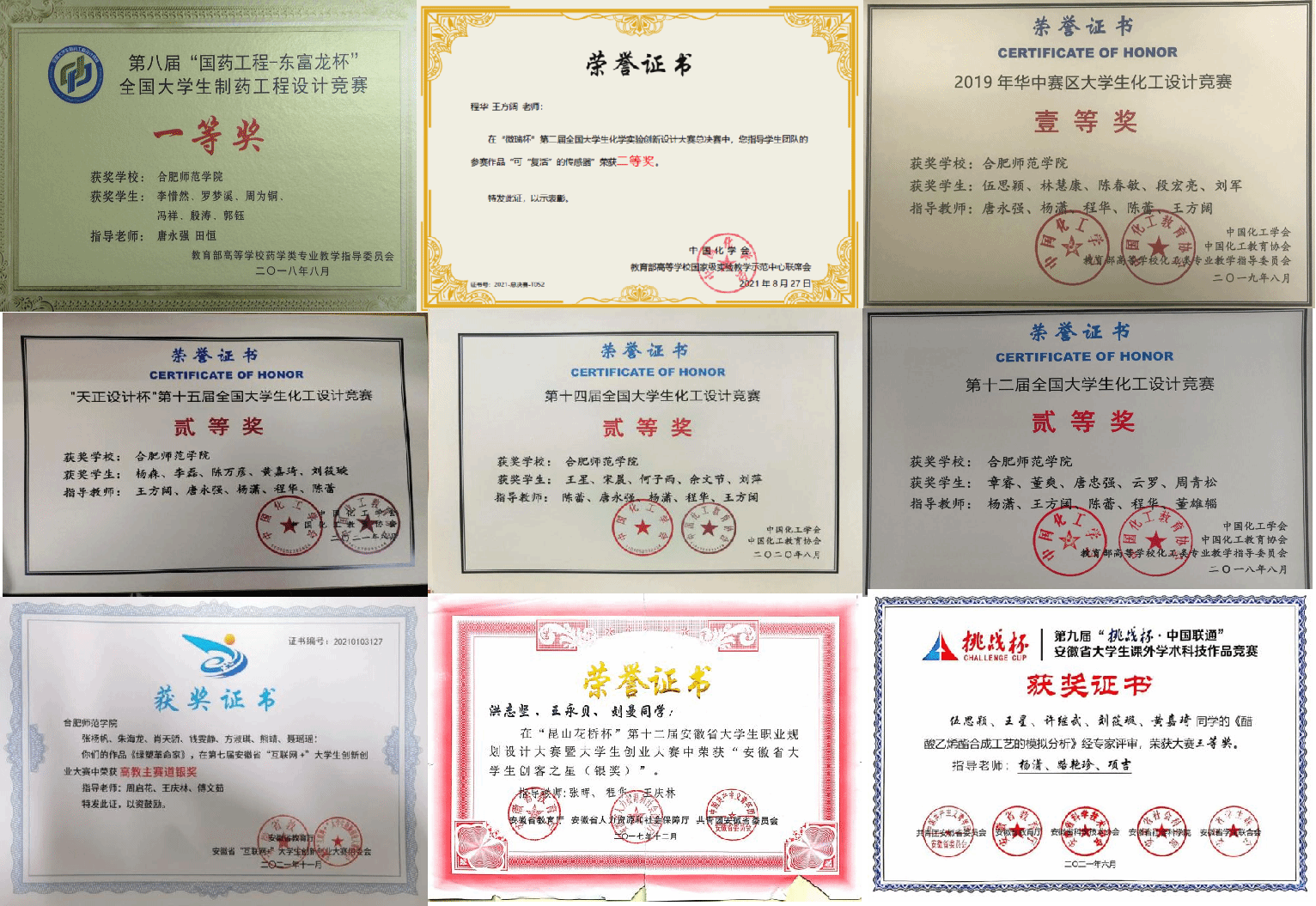 (4)人才培养日益重视。化学工程与工艺专业人才培养质量较高、就业创业率较高,社会认可满意度较好。就业去向主要是攻读硕士和进入企业事业单位等。近三年,本专业在校生获得国家奖学金1人,国家励志奖学金14人,校级优秀员工奖学金15人、校外奖学金2人。此外,在全国化工设计大赛、安徽省化学竞赛等省级以上专业学科竞赛中本专业员工共获得了36项奖项,其中获得15项国家级大赛一、二、三等奖和21项省级大赛一、二、三等奖等。近三年本专业毕业生的初次就业率都在90%以上,考取研究生率平均达到25.9%。员工已申请获批立项国家级、省级老员工创新创业项目40余项,研究成果先后发表论文18篇,申报专利15项。