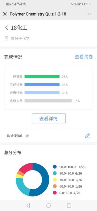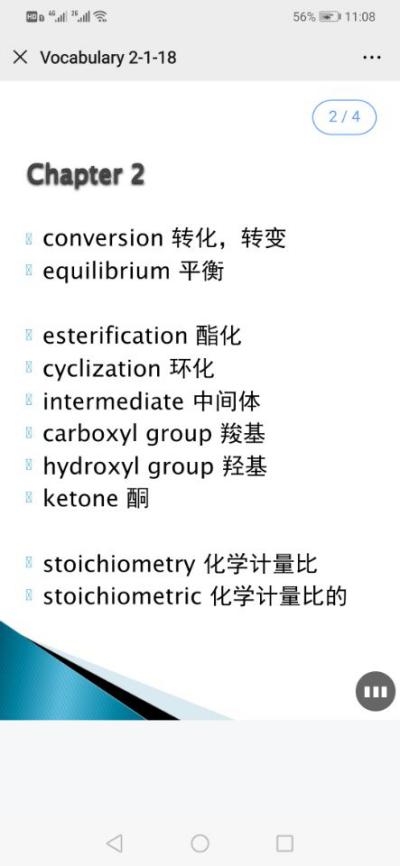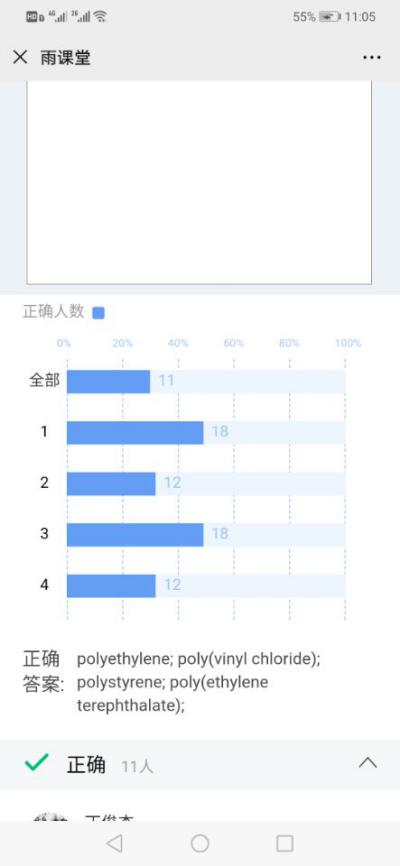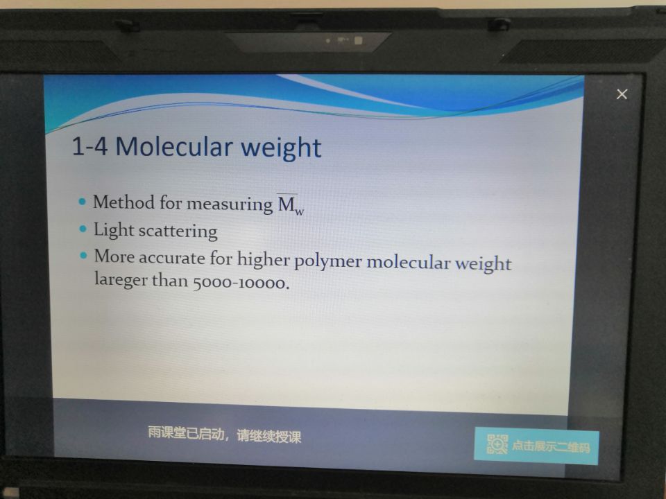 利用雨课堂帮助员工实现课前的预习。高分子化学是化工专业开设的一门双语教学课程。在课前就发布课程相关英语专业词汇的讲解和课程相关的视频。让员工对于课程相关的词汇有充分的了解,并通过视频学习高分子化学课程中的相关概念和重点内容。