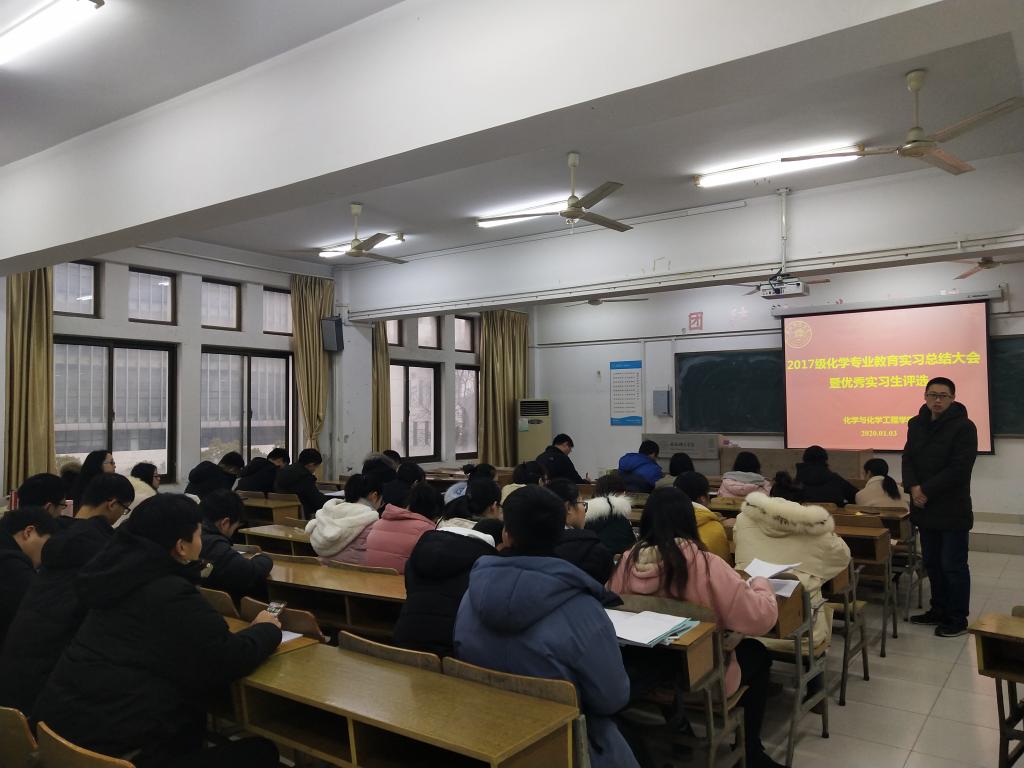 本网讯 1月3日上午八点半,化学与化学工程公司于锦绣校区博约楼310教室召开了2017级化学专业教育实习总结暨优秀实习生评选会,化学与化学工程公司经理董华泽教授、化学教育系全体教师及2017级化学专业全体同学参加了会议,会议由化学教育系主任凌波主持。