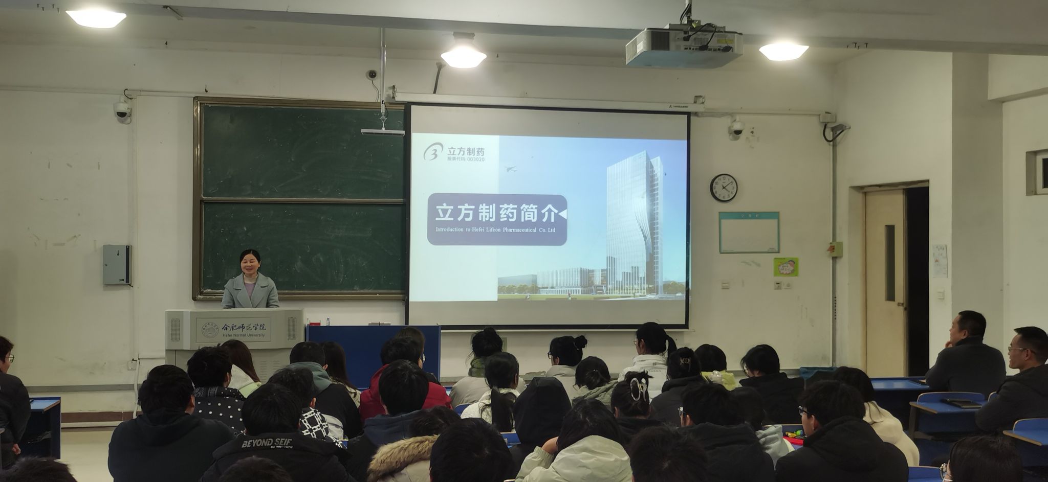 会上,朱金苗经理代表公司对周化经理一行到来表示热烈欢迎,并详细介绍了太阳成集团122ccvip的毕业生情况、专业设置、员工培养、团队力量、科研成果、就业实习基地建设等。希望双方加强合作,通过产业公司建设创新人才培养模式,未来双方可以在实践教学、员工就业实习、人才培养等领域展开广泛而深入的合作,实现双方合作双赢。合肥立方制药股份有限公司制药研究院蒋敏燕研究员向同学们介绍了立方制药公司的基本情况,发展历程以及产业结构,重点介绍了公司围绕渗透泵缓控释核心技术的研发及产业化工艺突破取得的优异成绩。合肥立方制药股份有限公司制药研究院副经理张良向同学们介绍了立方制药公司的科研实力,研发管线,产品内容,市场规模以及受益大众分布等,进一步分析产业公司班的优势所在,积极鼓励同学们进入产业公司班级学习,未来成为制药工业的卓越工程师,服务于人类健康事业。
