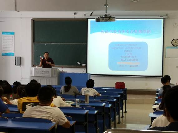 9月12日,安徽省食品药品检验研究院药包材检测室主任王国勤,合肥工业大学化学与化工公司副经理、博士生导师丁运生教授来公司分别作题为《药品包装系统及其质量控制》《面向工程应用的科学研究与员工培养》的学术报告,讲座在逸夫楼西阶二教室举行。本次讲座由化学与化学工程公司制药工程系主任郑斌主持,制药工程专业教师、员工一同聆听学习。