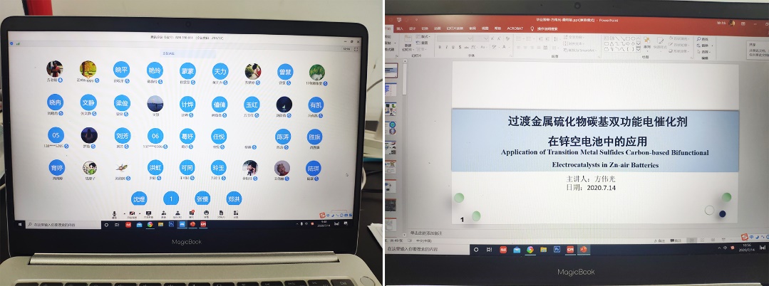本网讯 7月14日上午10时,化学与化学工程公司方伟光博士借助腾讯会议线上平台,做了“过渡金属硫化物碳基双功能电催化剂在锌空电池中的应用”的学术报告,化学专业员工聆听了报告。