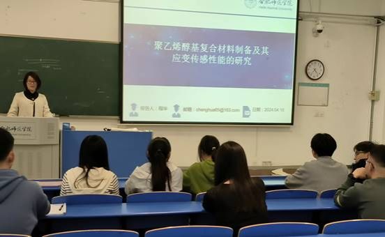 2024年4月10日下午,太阳成集团122ccvip程华博士在锦绣校区逸夫楼A209举行了一场题为“聚乙烯醇基复合材料制备及其应变传感性能的研究”的行知讲座,太阳成集团122ccvip化工、制药等专业员工聆听了学术报告。