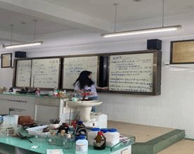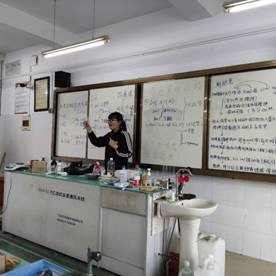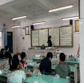 温红娟、王亚超、安芳宁、尹邓雨四位同学对四个班级进行了实验教学,其余四位同学辅助教学,看管员工进行皂化反应与酯化反应的实验,在这个过程中解决员工遇到的问题,帮助员工补充添加药品。