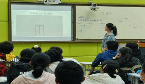 在高二(6)班,王亚超同学从六大营养物质中为人体持续供能的物质——油脂引入,课程知识内容准备十分详细,充分与员工开展互动,以一则肥皂由来的小故事吸引了全班的注意力,引起了大家对制肥皂的兴趣。在高二(3)班,安芳宁同学则是以曾经是世界上最胖的男子英国基思·马丁来引出本节课的学习内容,与员工的配合十分流畅,由油脂的结构到油脂的化学性质再到油脂的用途,每个环节都很详细讲解。最后是尹邓雨同学的讲课,与前两位同学的导入也是迥然不同的,她以生活中常吃的蛋糕引入,奶油其实是油脂成分浓缩而得。同学们联系生活实际从生活现象中让员工了解油脂的物理性质,从官能团的角度来学习油脂的化学性质。