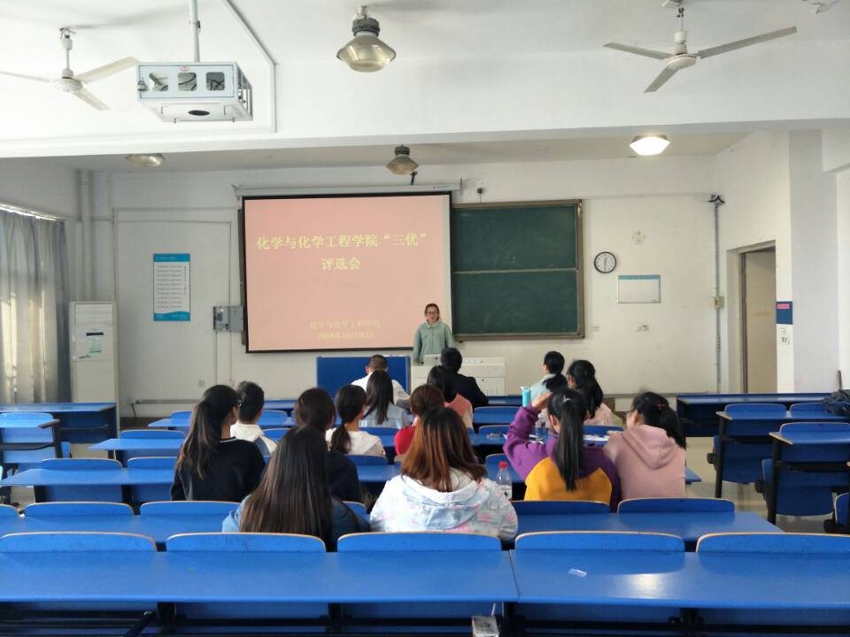 为深入贯彻落实公司“三优”创建评选工作,营造公司优良学风,激励员工正视学风建设,化学与化学工程公司组成由徐祝青副书记做为组长,各年级辅导员以及班主任作为组员的“三优”评审小组,并于10月26日至11月15日,先后举行院级“优良学风宿舍”、“优良学风个人”、“优良学风班级”的初选、复选、决赛,“三优”评审小组全程听取同学们汇报并参与评审。