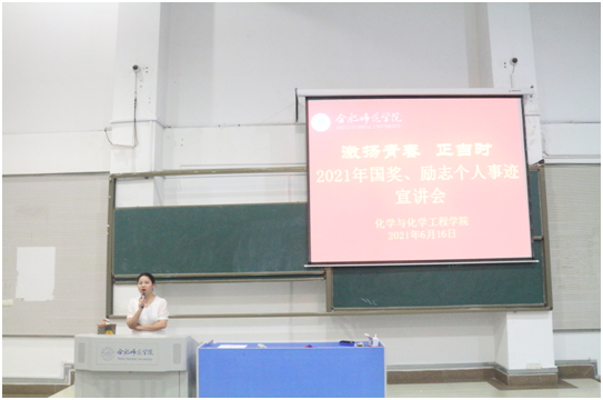 大会开始,原嘉清老师希望通过此次学习分享,20级员工可以着眼当下,把握人生方向,以优良学风和综合素质走好今后人生。接下来,由获国家奖学金的2019级化学工程与工艺班的刘筱璇、国家励志奖学金获得者2018年制药工程班郑磊和2018级化学工程与工艺班刘慧分别分享自己在大学中积累的学习经验。