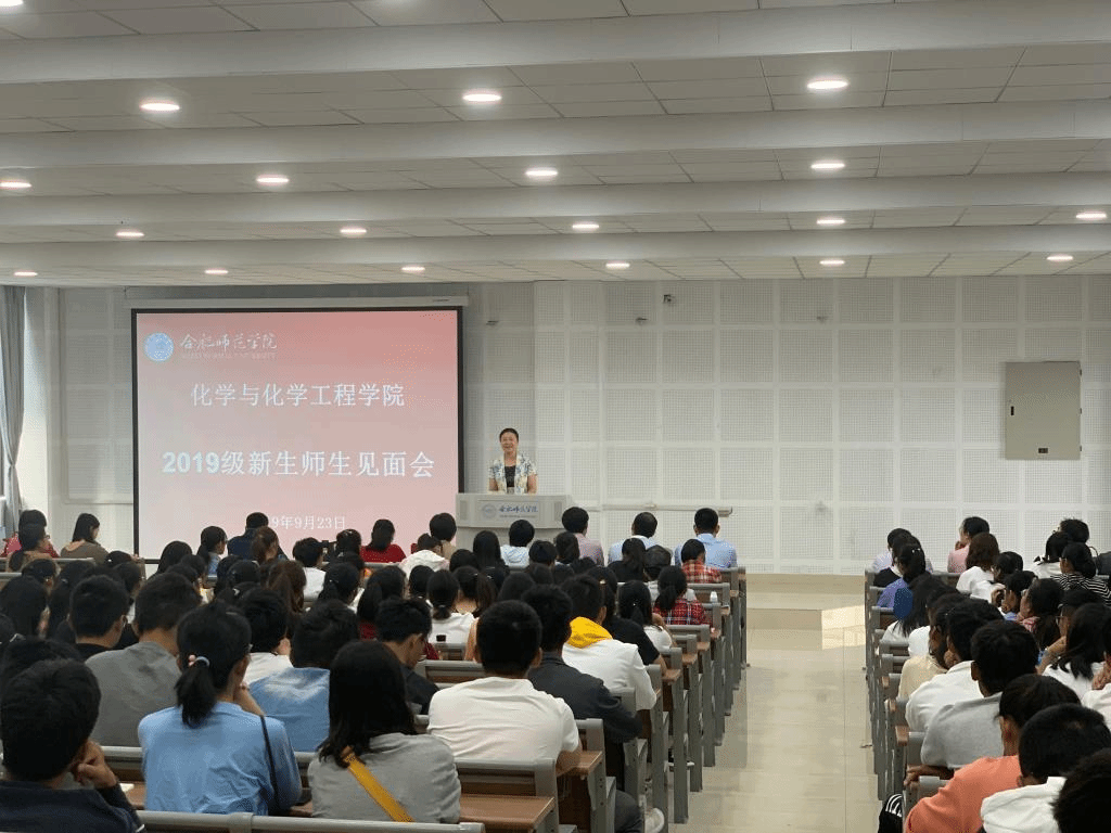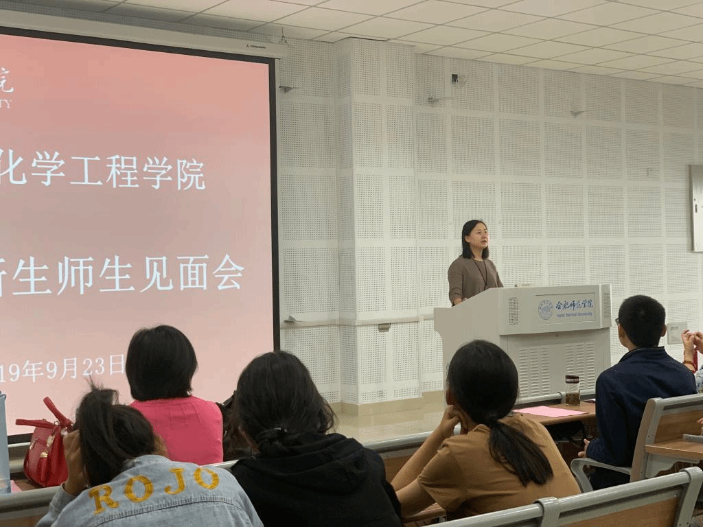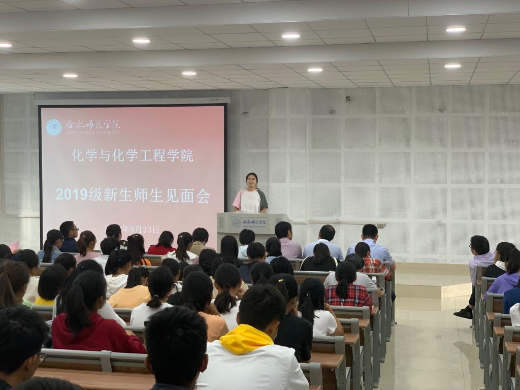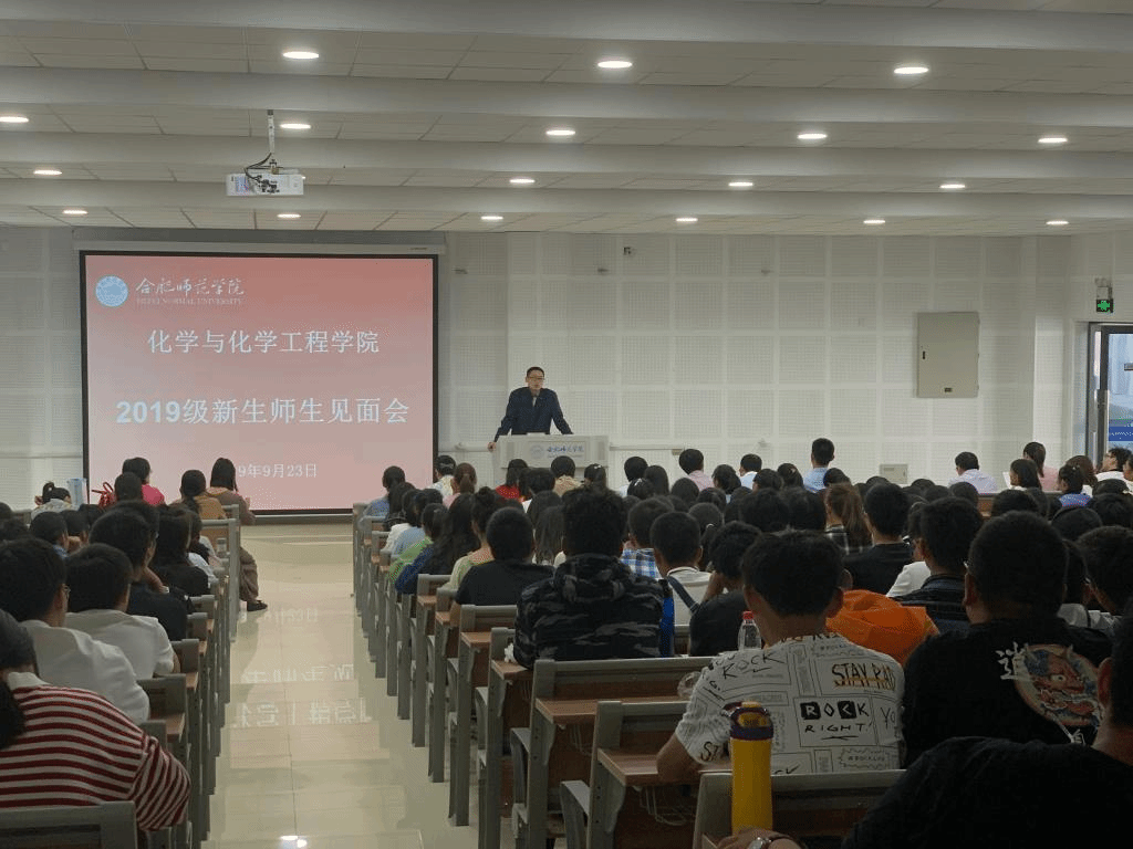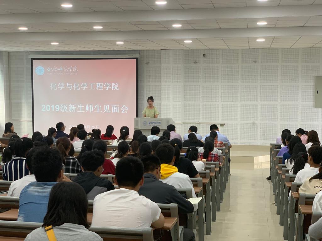 9月23日,化学与化学工程公司在滨湖校区博学楼A108教室召开2019级新生见面会。公司党总支书记李红、经理董华泽出席会议,各系系主任、公司党政秘书、教学秘书、四位学业导师、全体辅导员、2019级全体新生参会。会议由公司党总支副书记徐祝青主持。