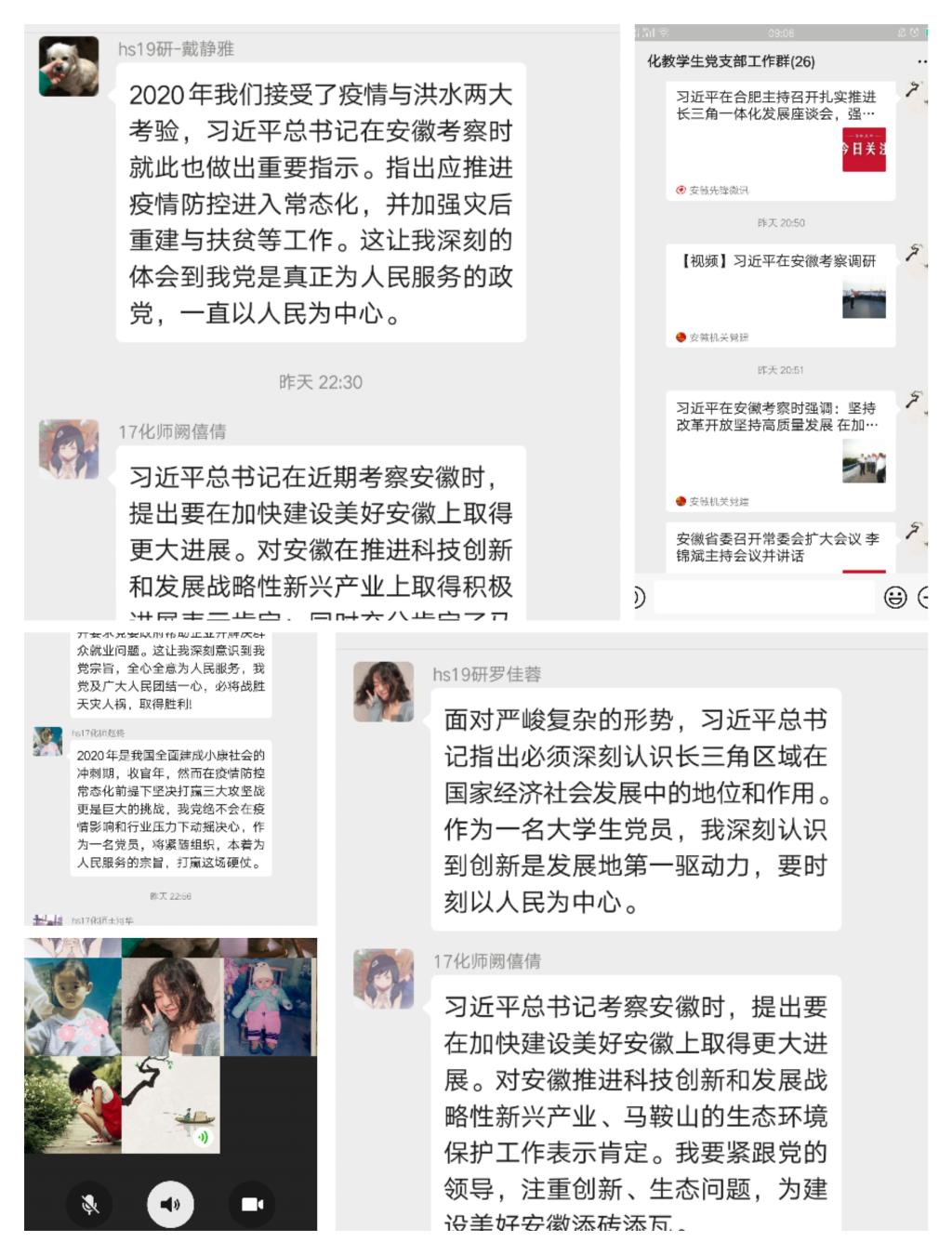 会上还观看了习近平在安徽考察调研的视频资料,王庆林从自然与人文角度介绍了考察路线的地理历史、形成及社会经济发展。(化学教育系员工党支部)