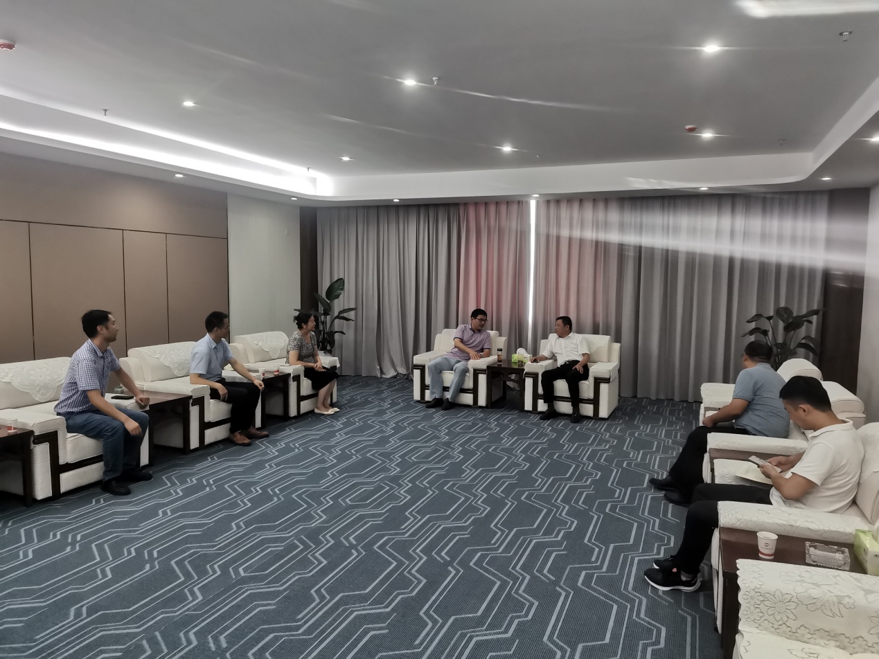 本网讯 7月24日,公司党委委员、副经理周端明率公司党政负责人一行,深入颍上县调研推动产学研合作,安徽颍发投资集团有限公司董事长苏宇,县科技局局长姜海波,经开区管委会党委委员、办公室主任陈国印等分别参加座谈会。园区规模以上企业代表参加交流。
