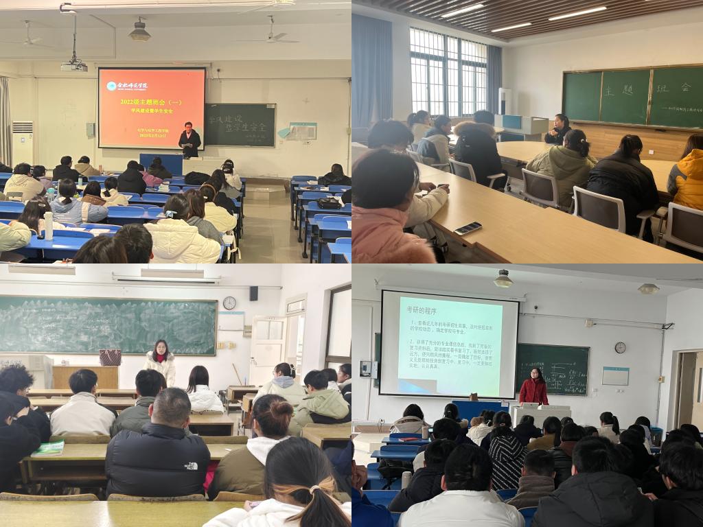 根据不同年级,辅导员、班主任们分别开展了有针对性的主题教育。2022级年级辅导员向同学们强调要加强自我管理,积极参加学术科技、志愿服务等方面的活动,切实提高自身综合素质。2021级年级辅导员、班主任强调认真备考期末考试、四六级考试,培养良好的作息习惯,注意个人卫生,好好锻炼身体;2020级辅导员、班主任根据专业的不同,做了细致的专业考研介绍和动员工作,另从考公、就业、考编、入伍、选调生等方面向同学们介绍了未来毕业的方向,引导员工找准目标,提前规划,制定计划;2019级年级辅导员对毕业班员工加强了安全教育、强调了就业工作、毕业班综测和评奖评优等工作。(化学与化学工程公司:汪颖 汤晴川)