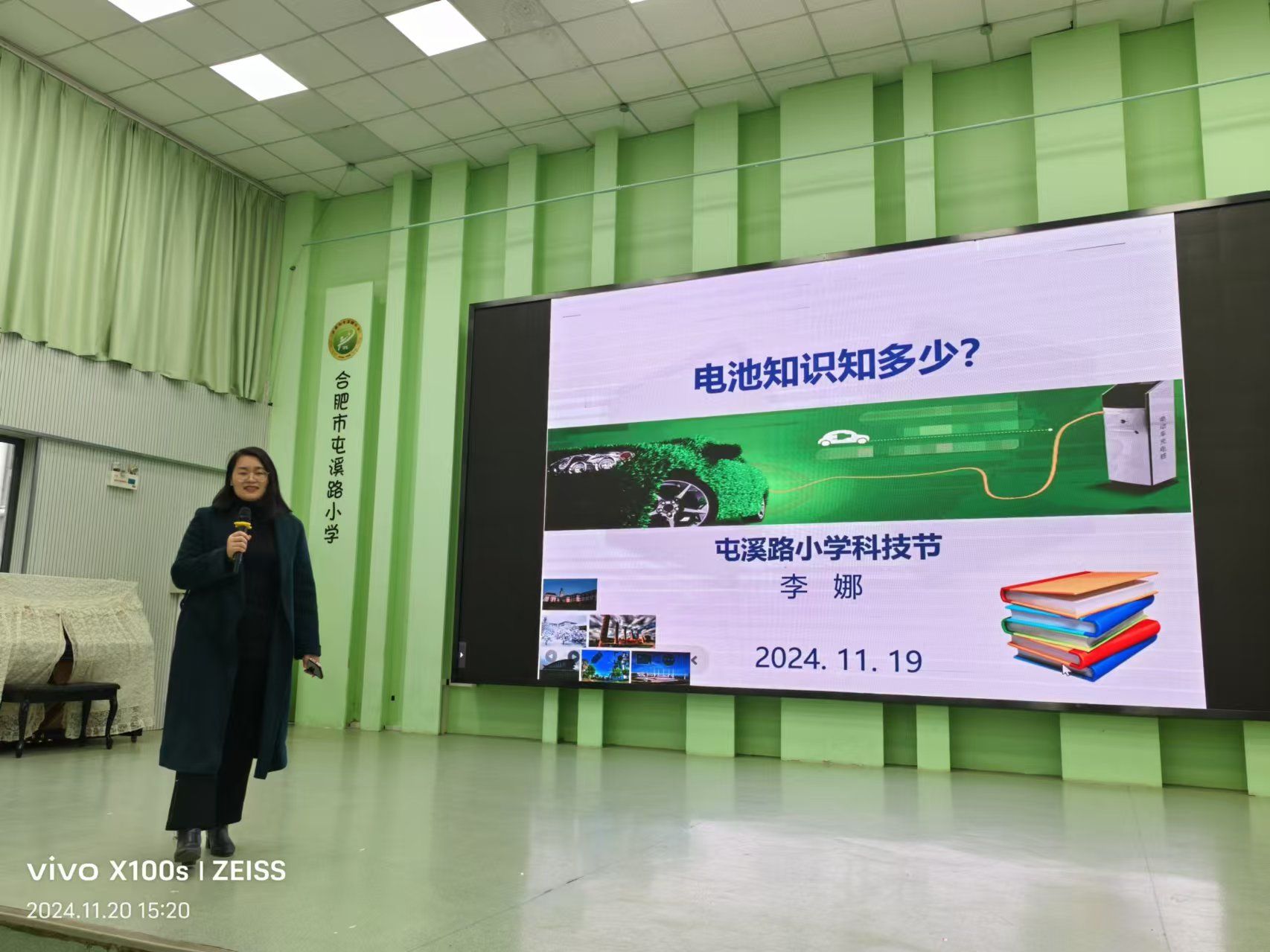 另一位受聘教师李娜也积极建言献策,她提议可以通过科普活动、行知学堂、科普比赛、场馆参观等形式开展科学教育。11月18-22日,在挂职公司举行的2024年度校园科技节活动中,她先后为六年级全体同学讲授了两场题为《电池知识知多少》的精彩讲座,在丰富同学们课外科学知识的同时,还激发了小员工们对自然科学的浓厚兴趣。