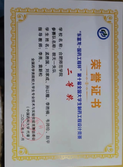 自大赛公布比赛题目及设计任务书以来,在校院领导的悉心关怀下、老师们的支持下,制药工程系于2022年6月份即积极投入到竞赛准备中。各参赛队伍克服重重困难,利用课余和暑假时间,查阅大量资料,学习相关知识,本着“安全、节能、创新”的原则,经过为期4个月半紧张有序的设计工作,各支队伍均顺利提交了设计作品。六小灵童、皖无一失和疫干二净等三支队伍从校赛中胜出。